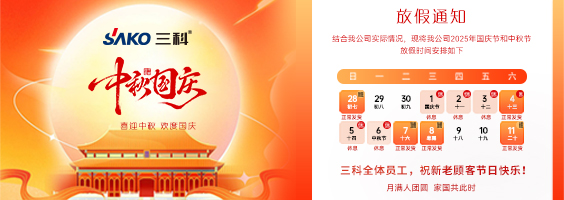 秋高氣爽,雙節同輝。值此中秋團圓與國慶歡慶之際,SAKO三科全體員工提前祝您節日快樂,闔家幸福,萬事如意!